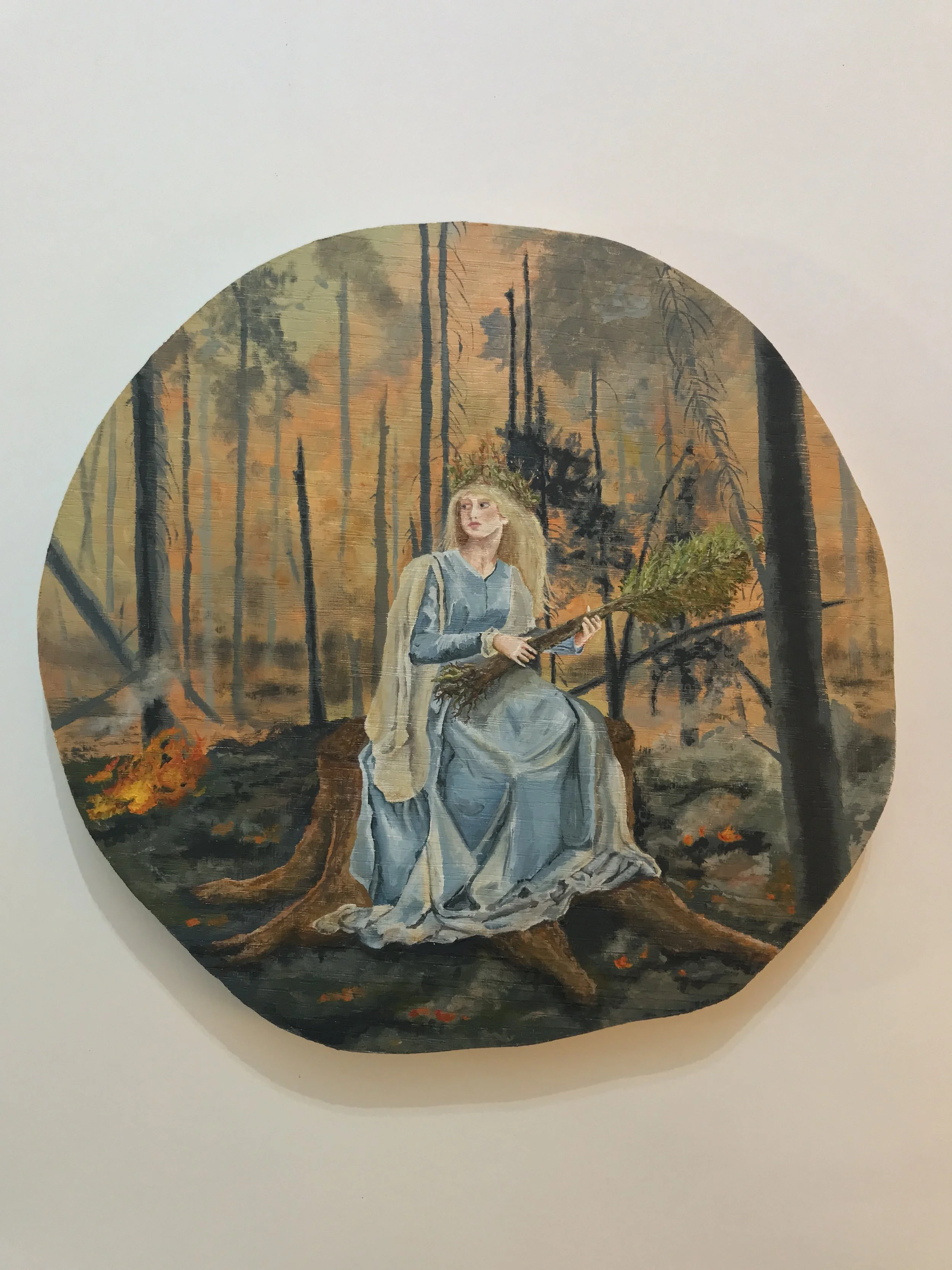 View fullsize View fullsize View fullsize ‘After Bowerbury’Oil on Wood. 10” diameter. Frame: grape ivy & amaranthus.